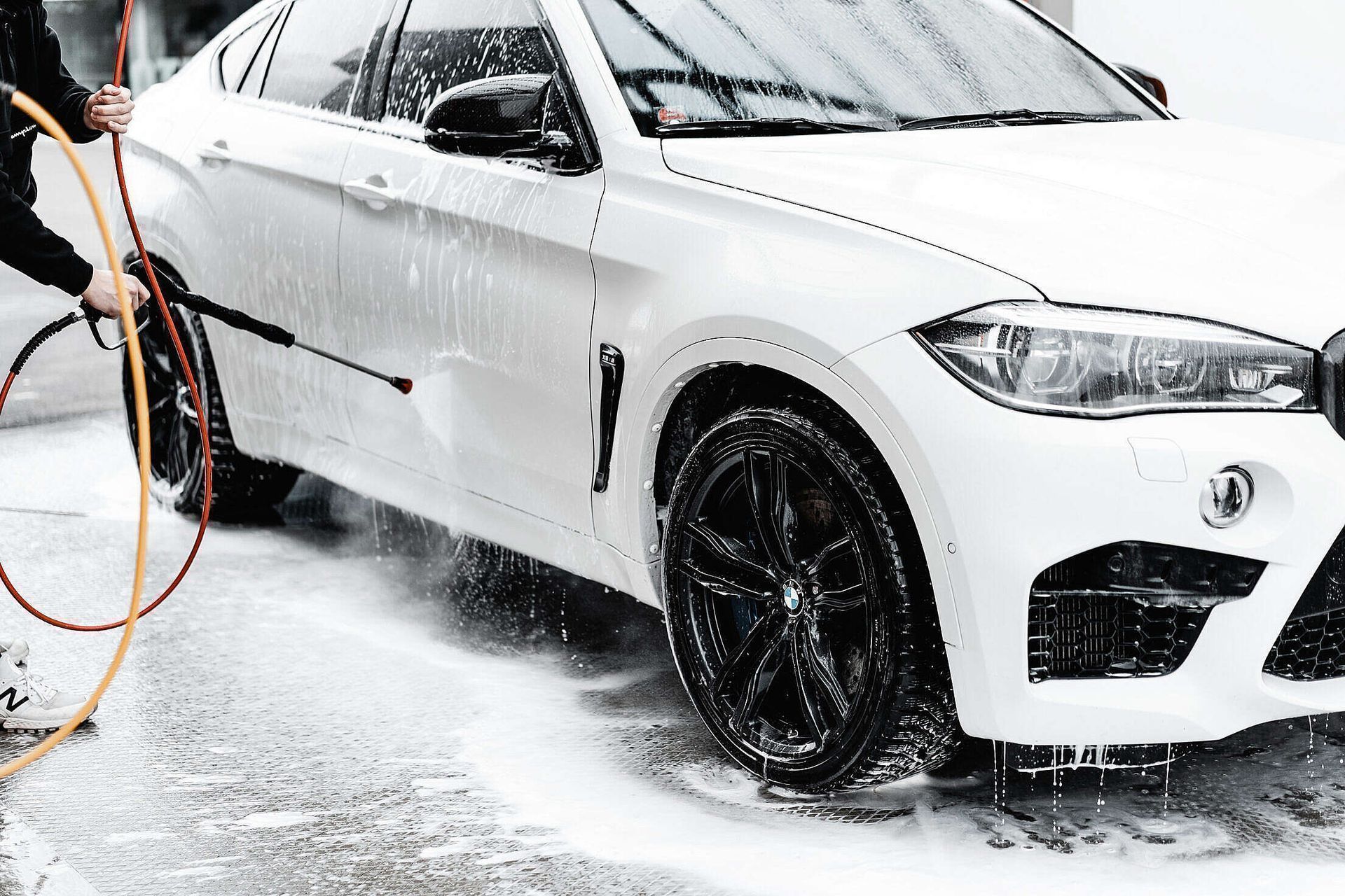 Exterior foam wash, windows, tire dressing, interior wipe down and vacuum.